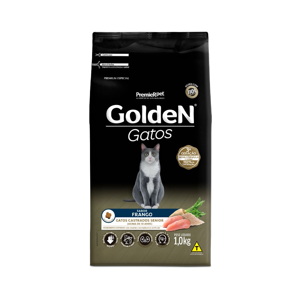 Ração Golden Gatos Castrados Sênior Frango é um alimento desenvolvido especialmente para atender às necessidades de felinos a partir de 10 anos de idade e que passaram pelo procedimento de castração.